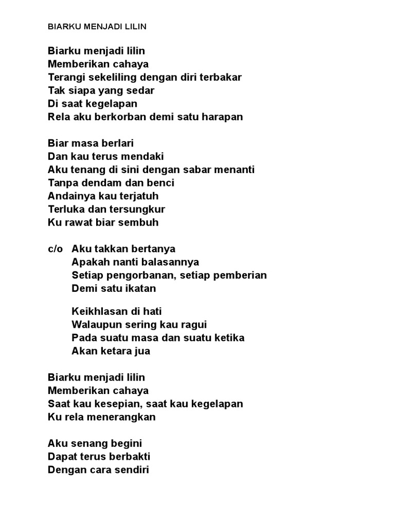 Lirik Biarku Menjadi Lilin Pdf